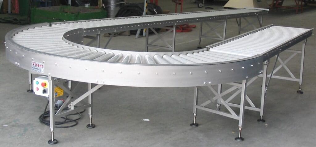 Visser levert zowel aangedreven als zwaartekrachtbanen, met stalen, kunststof of RVS rollen. De banen zijn beschikbaar als rechte of bochtuitvoering, accumulerend of frictiegestuurd. Volledig op maat gemaakt met of zonder aandrijving, besturing of ondersteuning – afgestemd op jouw situatie.