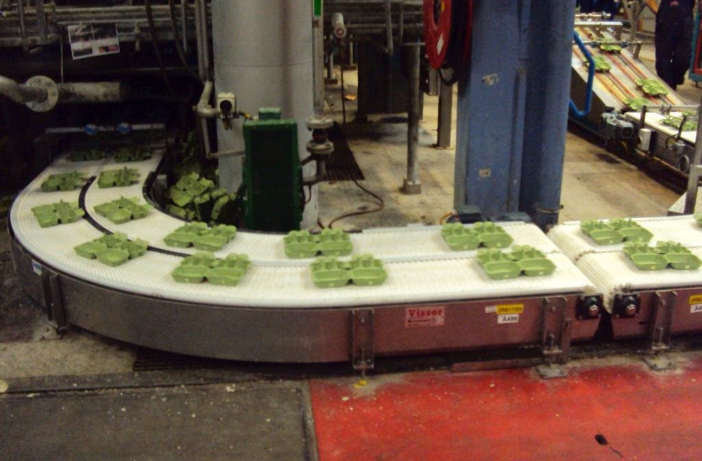 Der Kurvenförderer nutzt den Platz in Ihrer Produktionslinie effizient und ist in Ausführungen von 90° und 180° erhältlich.